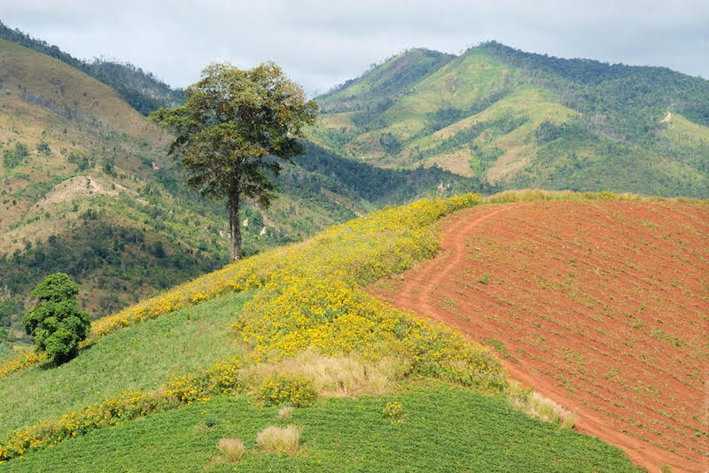 Hoa dã quỳ mọc dưới chân núi lửa. Ảnh: st