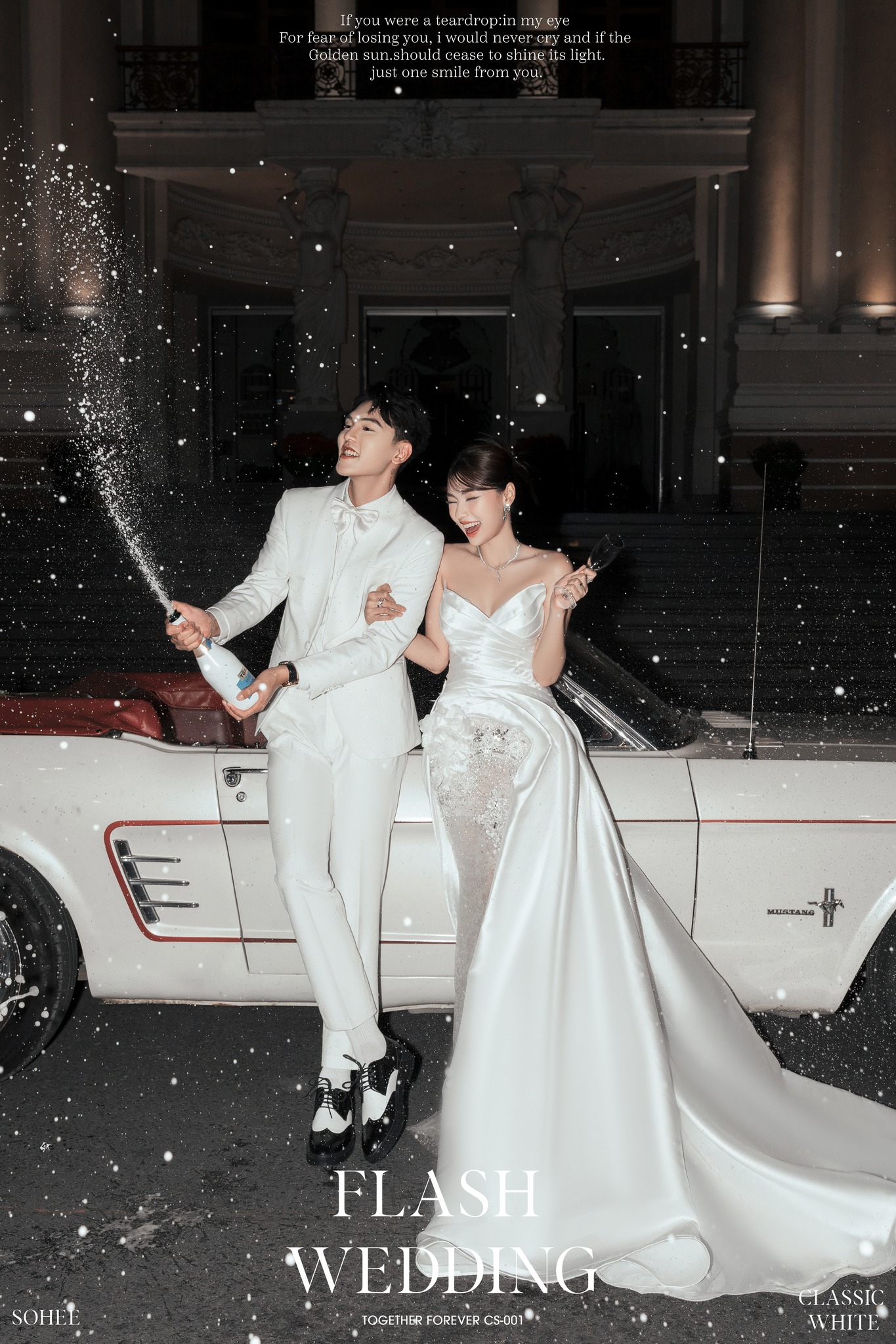 Lấy cảm hứng từ các tạp chí thời trang danh tiếng, concept high-fashion giúp dâu rể tỏa sáng như người mẫu chuyên nghiệp. Ánh sáng được xử lý khéo léo, layout sang trọng và thần thái mạnh mẽ tạo nên một bộ ảnh ấn tượng và đầy khí chất.