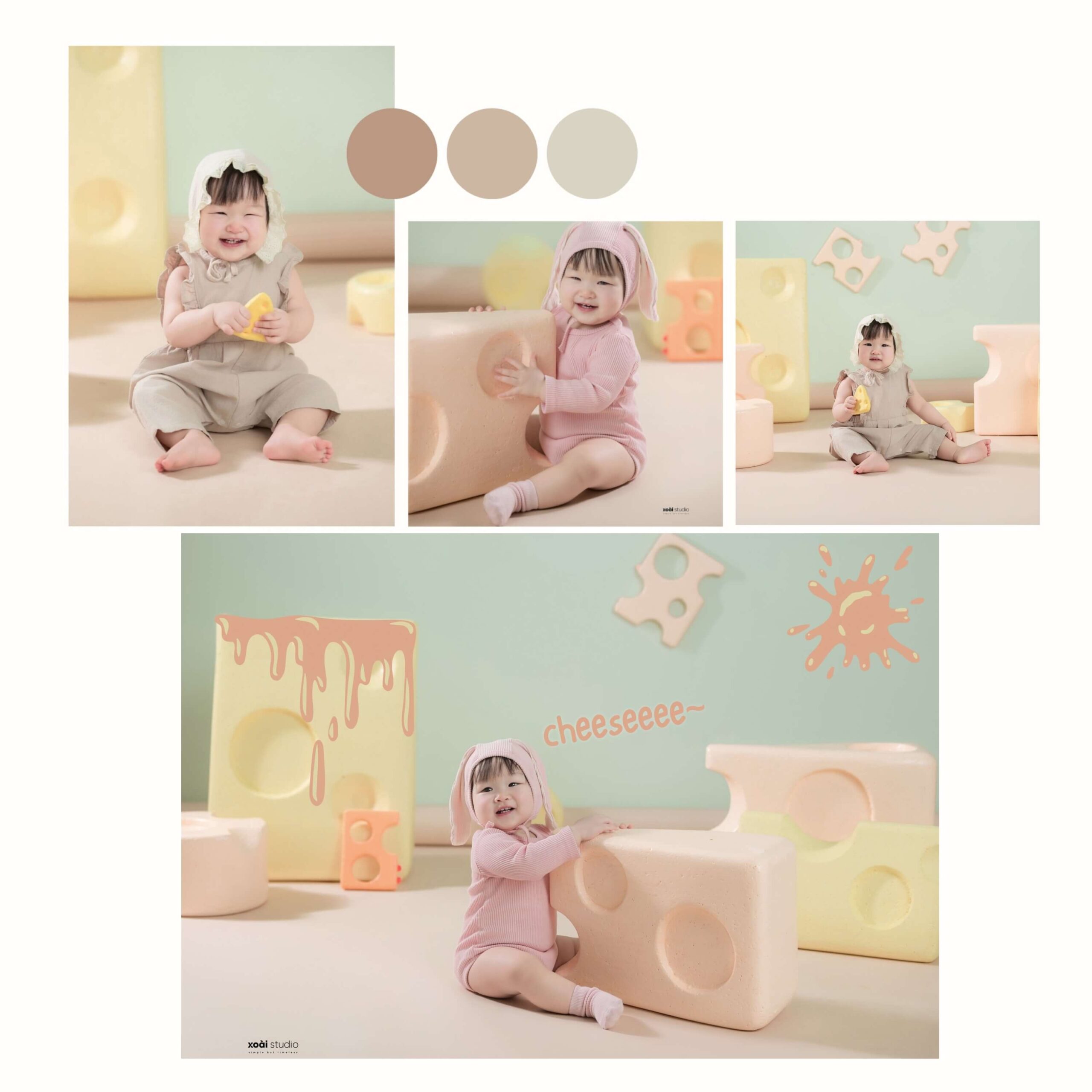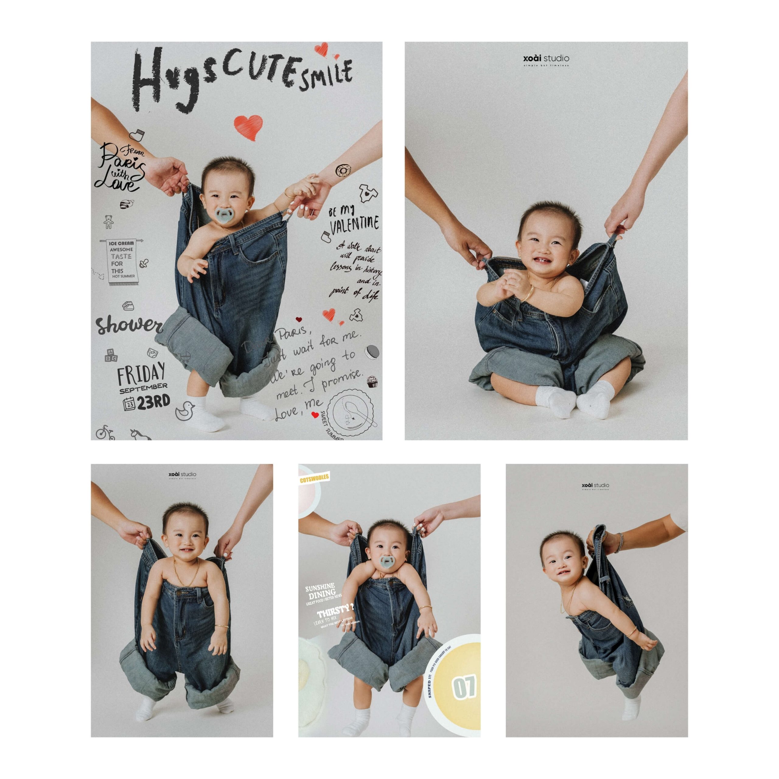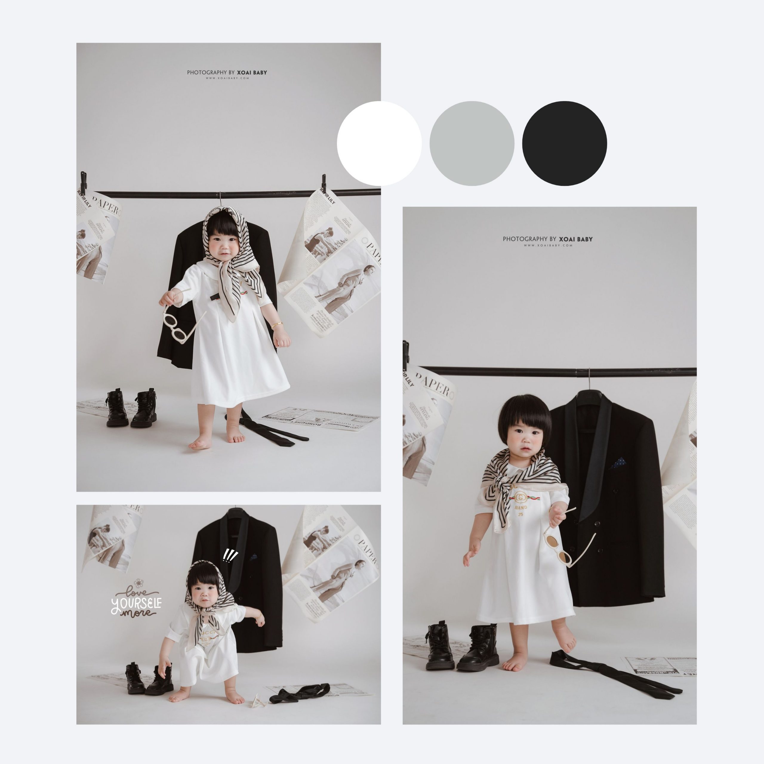 Ở Xoài Baby chúng tôi luôn tạo ra những xu hướng mới nhất, để đáp ứng mọi nhu cầu của khách hàng. Không những dày công suy nghĩ, chọn lọc ra từng Concept độc đáo để phục vụ bé và gia đình theo từng chủ đề, mà chúng tôi còn tỉ mỉ thiết kế những phụ kiện kèm theo dành cho bé độc nhất vô nhị chỉ có tại Studio của chúng tôi.