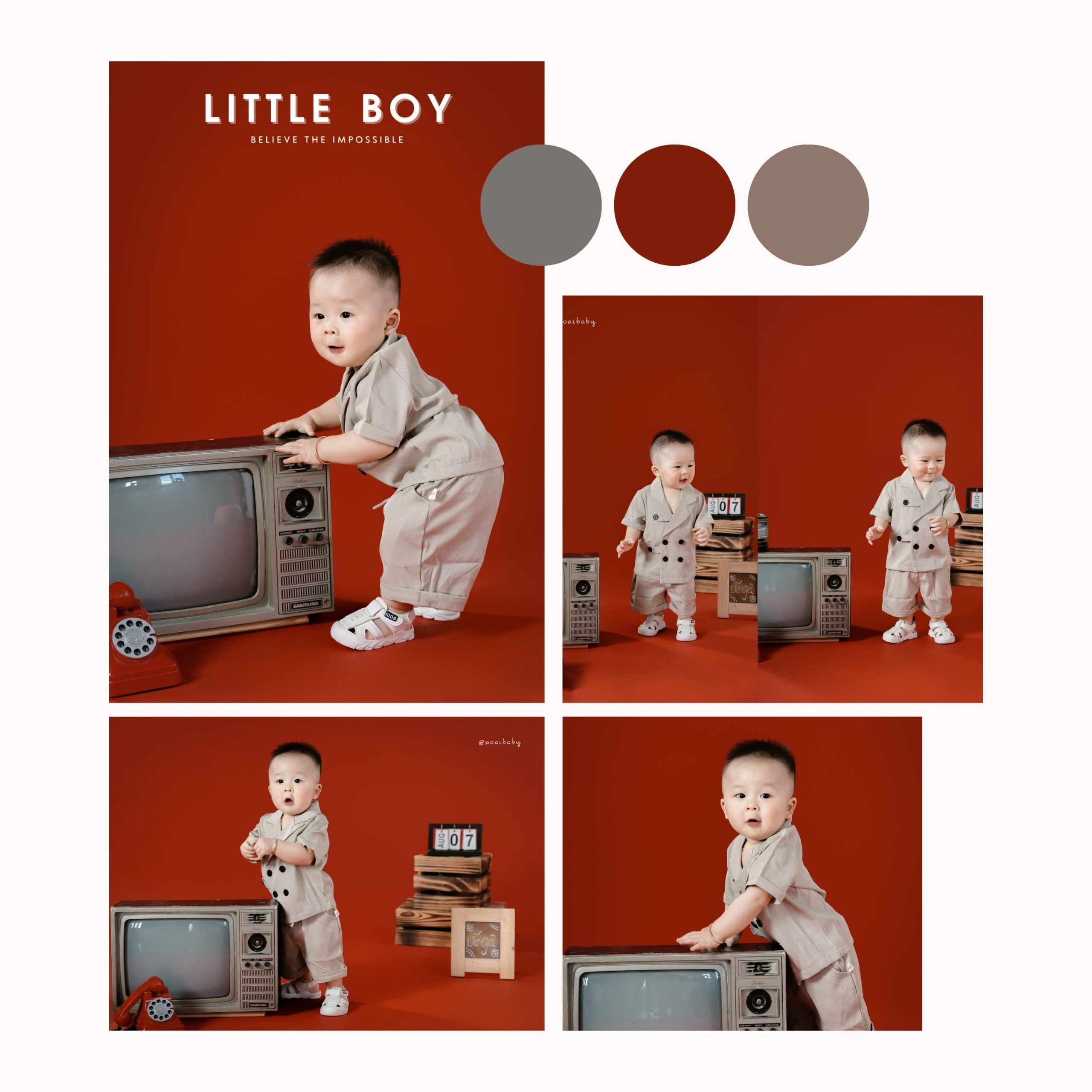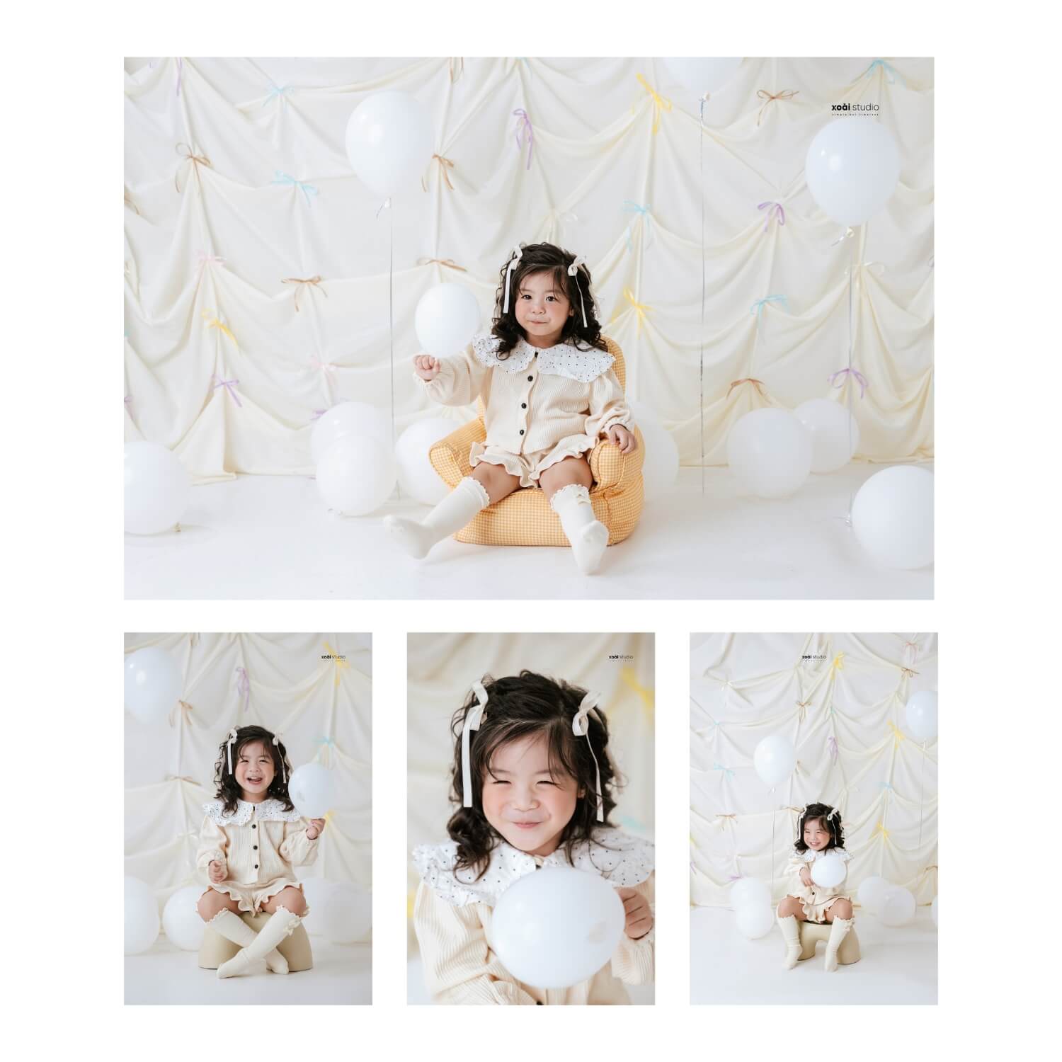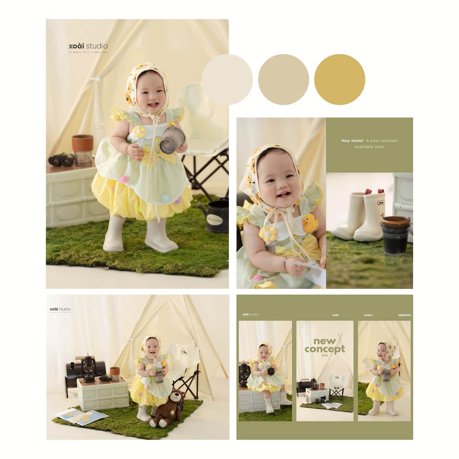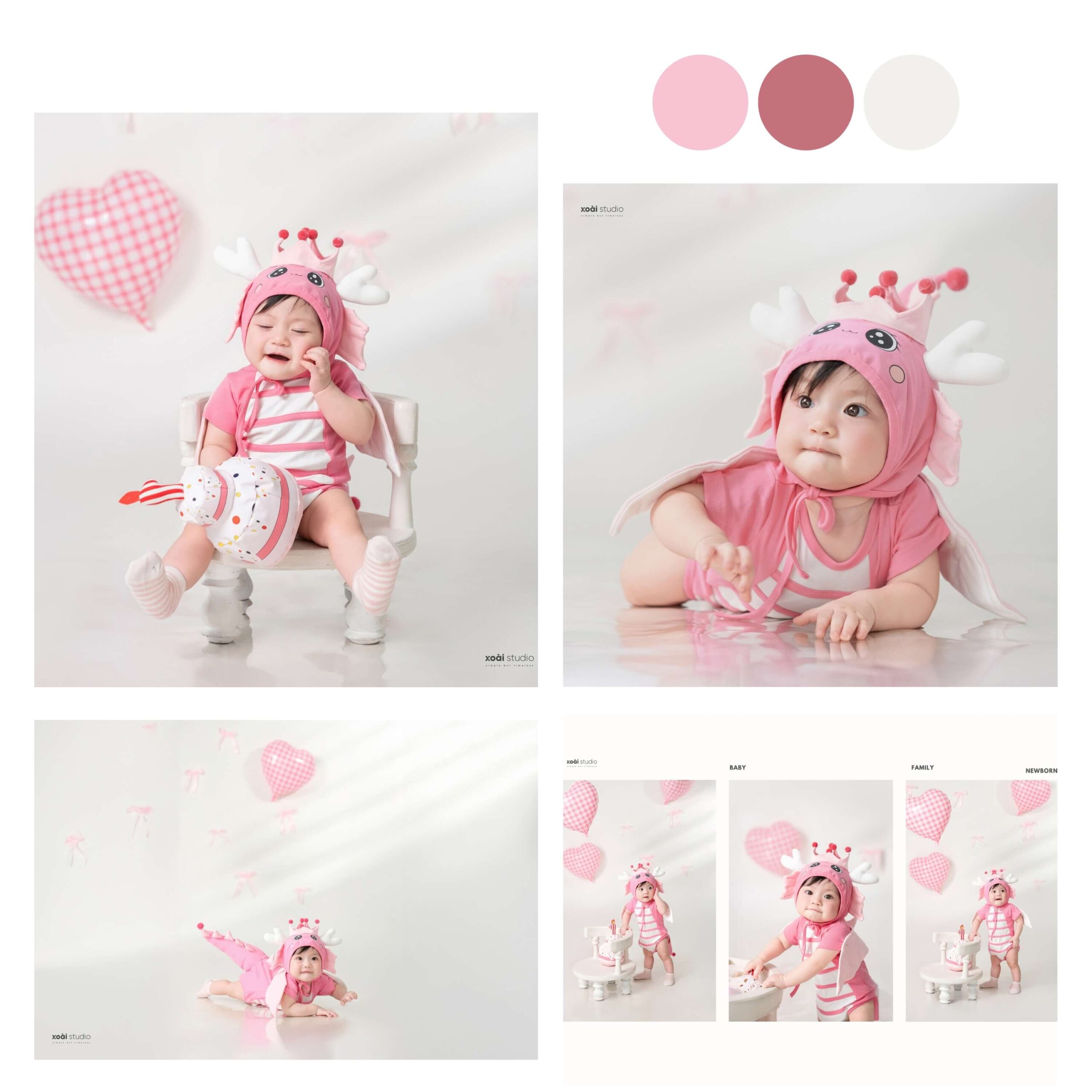 Ở Xoài Baby chúng tôi luôn tạo ra những xu hướng mới nhất, để đáp ứng mọi nhu cầu của khách hàng. Không những dày công suy nghĩ, chọn lọc ra từng Concept độc đáo để phục vụ bé và gia đình theo từng chủ đề, mà chúng tôi còn tỉ mỉ thiết kế những phụ kiện kèm theo dành cho bé độc nhất vô nhị chỉ có tại Studio của chúng tôi.