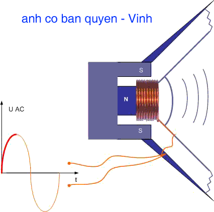 Loa (speaker): Khi dòng điện âm tần đi qua cuộn cảm của loa thì nó sẽ tạo ra một từ trường biến thiên. Từ trường này sẽ bị từ trường của nam châm cố định bên trong loa đẩy ra đẩy vào làm cuộn dây cũng dao động theo. Cuộn dây dao động sẽ làm màng loa gắn với nó dao động theo và phát ra âm thanh.
