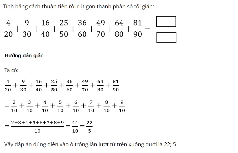 Dưới đây là một số bài tập về phép cộng các phân số để các em có thể cùng nhau luyện tập: