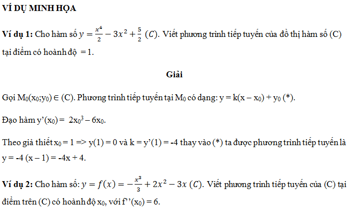 – Thay x0 vào hàm số ta tìm được tung độ tiếp điểm cần tìm.