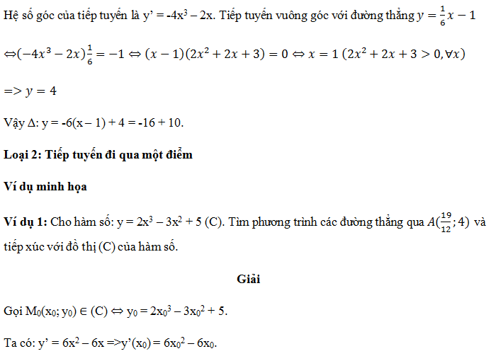 -Tính đạo hàm của hàm số, thay x0 ta được hệ số góc.