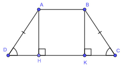 Gọi AH, BK là hai đường cao của hình thang. Khi đó, ABKH là hình chữ nhật ta có: