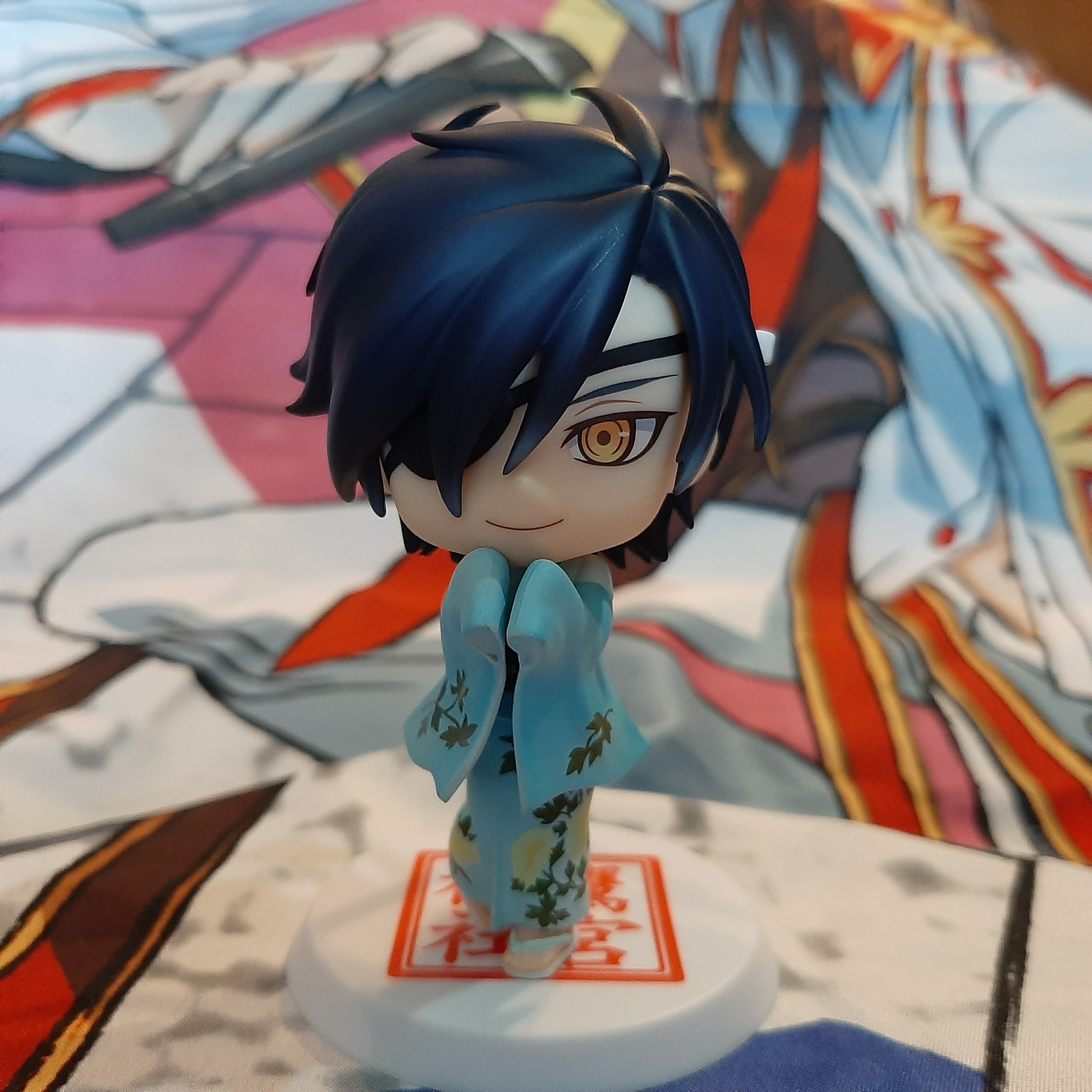 - Shokudaikiri Mitsutada “Shoku” – Nendoroid by Good Smile Company. 2nd hand, should be authentic because of the high quality paint job and precisely-fitted joints. I own a few bootlegs for “high wear and tear” playing / photography, and none of them are as good.