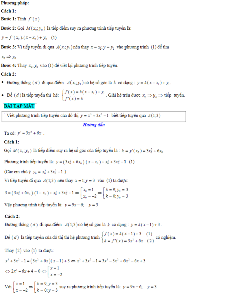 Kiểu 3. Phương trình tiếp tuyến đi qua điểm A(x1;y1).