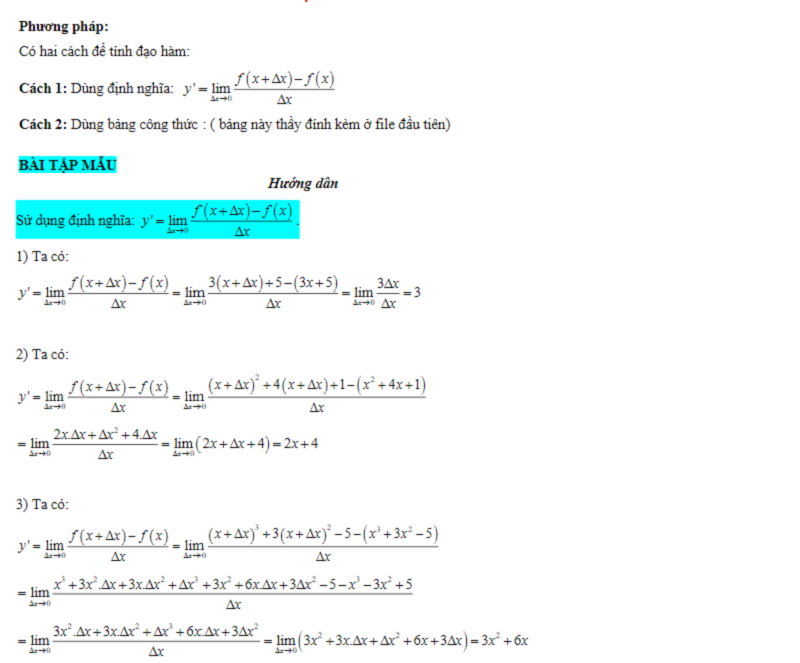 Xem thêm: Gợi ý công thức đạo hàm nhanh giúp tính toán nhanh chóng, dễ dàng và chính xác nhất
