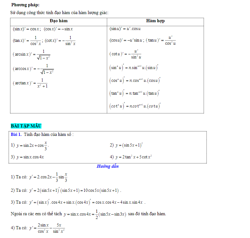 Dạng 4: Đạo hàm của hàm lượng giác nâng cao