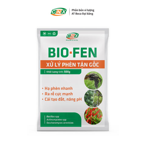 BIO FEN chứa các thành phần vi sinh vật có thể phân giải lân hạ phèn hiệu quả nhanh chóng, xử lý nhôm (Al), Sắt (Fe) giúp hỗ trợ giải phóng Lân (P) và cây sinh trưởng, phát triển khỏe mạnh trong môi trường đất phèn.