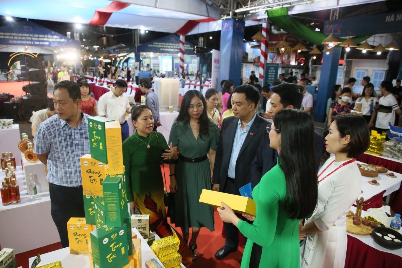 Sau lễ khai mạc, các đại biểu đã tới thăm quan không gian trưng bày, giới thiệu, quảng bá các sản phẩm thế mạnh, tiêu biểu, đặc trưng của TP Hà Nội.