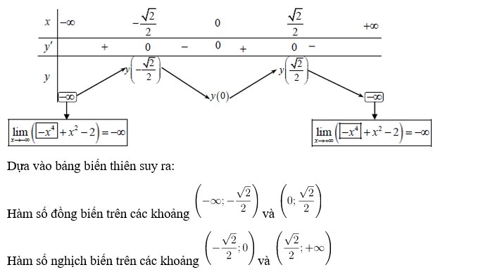Ví dụ: Xét tính đơn điệu của mỗi hàm số sau: y = -x4 + x2 – 2