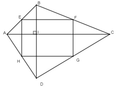 Cho tứ giác ABCD có hai đường chéo vuông góc với nhau. Gọi E, F, G, H theo thứ tự là trung điểm của các cạnh AB, BC, CD, AD. Tứ giác EFGH là hình gì? Vì sao?