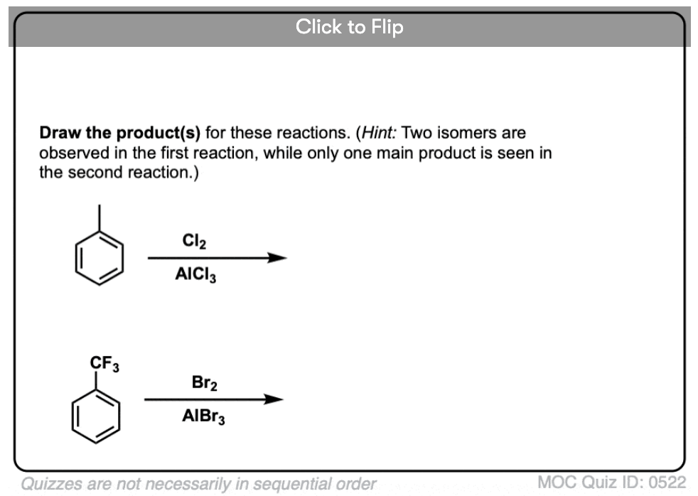 In the next post we’ll cover two more important electrophilic aromatic substitution reactions: sulfonation and nitration, and they will also follow this three-step pattern!