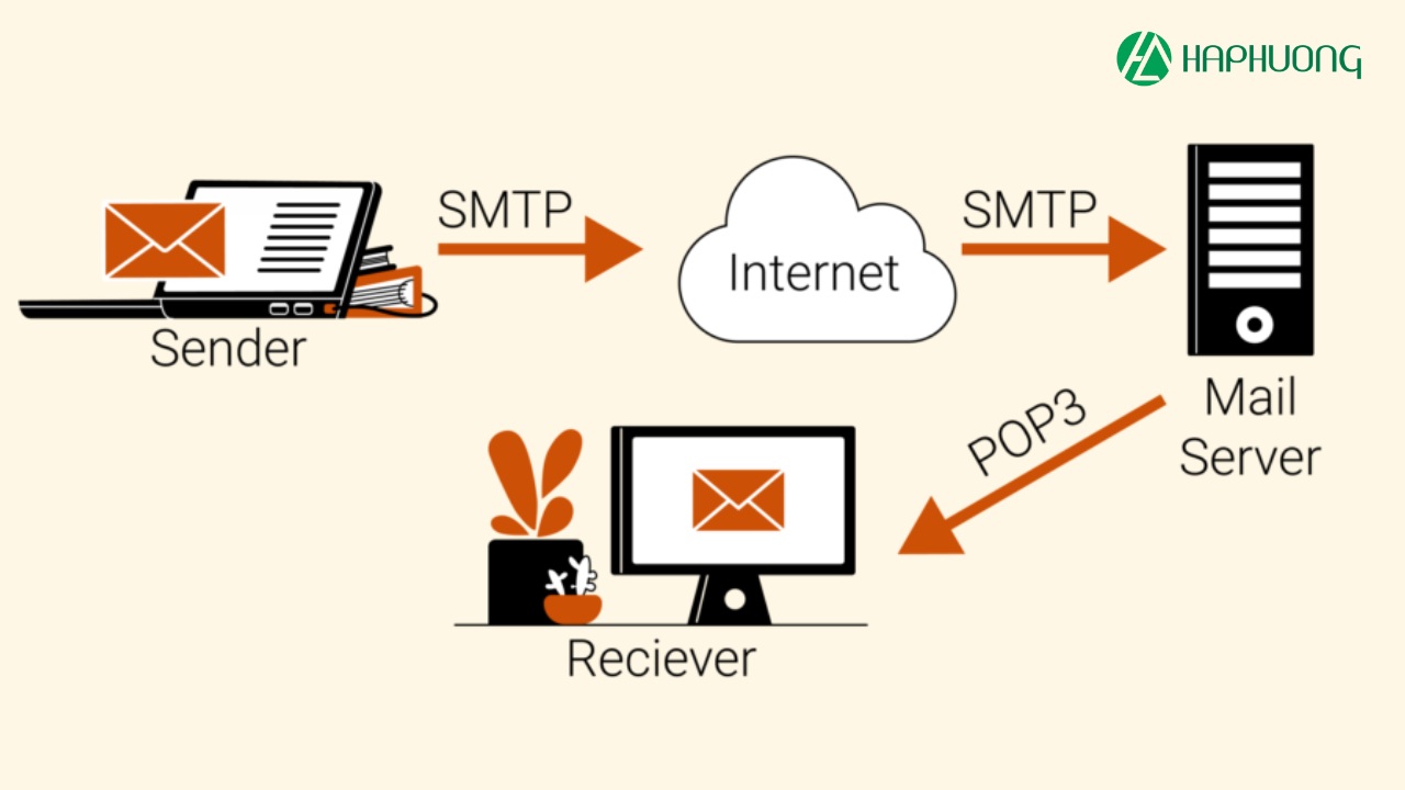 - SMTP (Simple Mail Transfer Protocol): Dùng để gửi email từ máy khách đến máy chủ hoặc giữa các máy chủ email. SMTP chỉ dùng để gửi email, không nhận email.