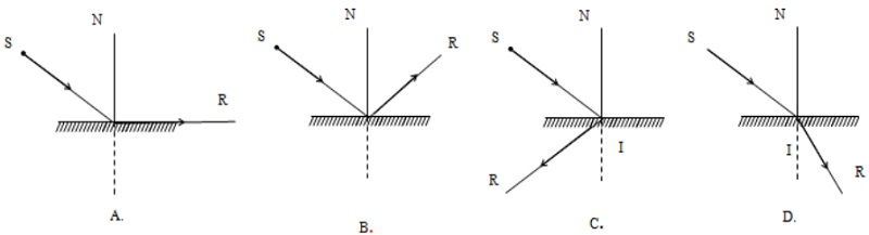 Câu 8: Trong các hình vẽ sau, tia phản xạ IR ở hình vẽ nào đúng?