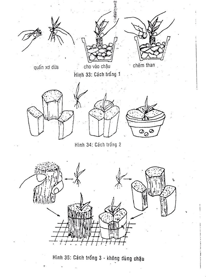 - Trong trường hợp Arachnis, Renanthera, Vanda … (Lan đơn thân), khi chúng quá cao lớn có thể cắt phần ngọn dài khoảng 30-50 cm, có ít nhất 2-3 tầng rễ để trồng. Phần gốc bên dưới nếu không còn lá nữa cũng có thề ra chối bên, từ đó có thể tách ra để trồng như trên.