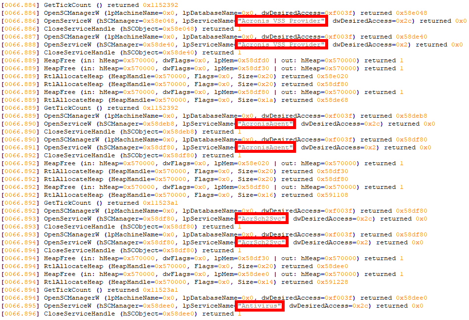 After it finishes with process enumeration, Berserker tries to shutdown services responsible for backups (see Appendix for a complete list), monitoring, or anything that could prevent it from encrypting files (Figure 2).