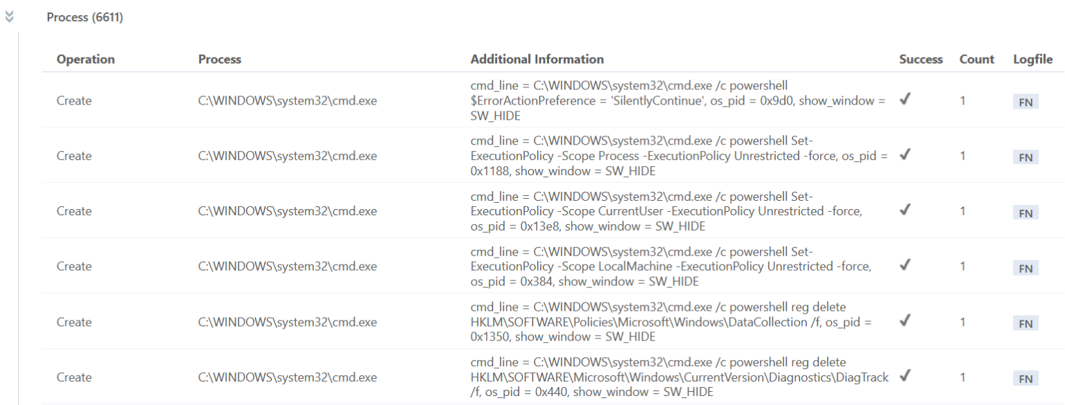 Berserker executes multiple Powershell commands during its execution. To make sure this is possible it tries to adjust certain settings and preferences (Figure 3). Following that, it also adjusts preferences for Windows Defender like disabling real-time monitoring and behavior monitoring.