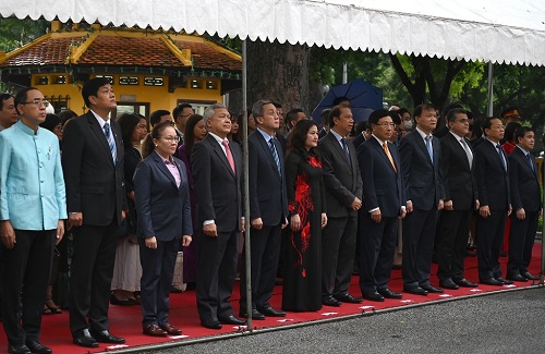 Đại sứ các nước ASEAN, Lãnh đạo các Bộ Công Thương, Lao động – Thương binh và Xã hội, Ủy ban nhân dân thành phố Hà Nội, và các đơn vị liên quan đã cùng dự hoạt động này. Lễ Thượng cờ năm nay đặc biệt hơn khi trùng với thời điểm Việt Nam đảm nhận cương vị Chủ tịch ASEAN và kỷ niệm 25 năm tham gia ASEAN.