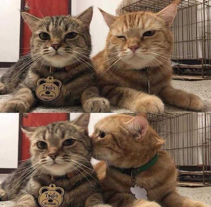 Bức ảnh mèo ôm nhau theo phong cách meme