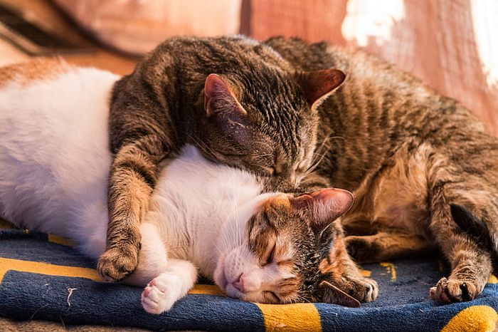 Hình ảnh hai con mèo ôm nhau thân thiết