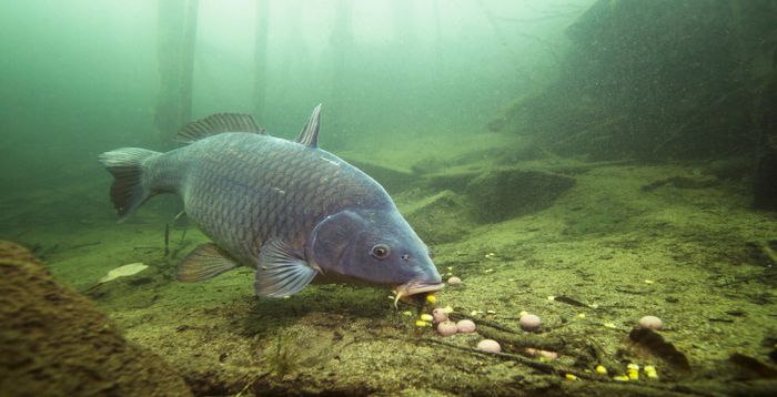 Hình ảnh cá chép kiếm ăn, phản ánh sự sinh động và hài hòa của thiên nhiên qua hành vi săn mồi tinh tế.