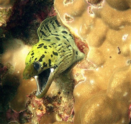 Chúng tôi tới vách đá. Thomas vỗ vai tôi và chỉ. Khoảng 10 feet xa, một con cá mập Leopard đang bơi ngang. Tôi cầm camera lên nhưng không kịp. Chúng tôi tiếp tục lặn và chụp một con cá sư tử và những san hô đẹp mắt.