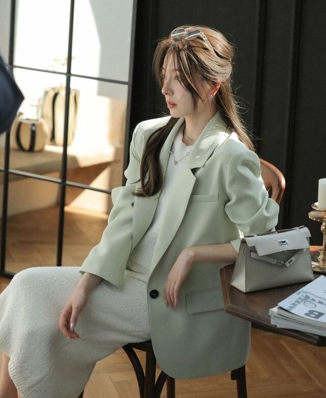 Hình nữ doanh nhân mặc vest màu pastel nhẹ nhàng