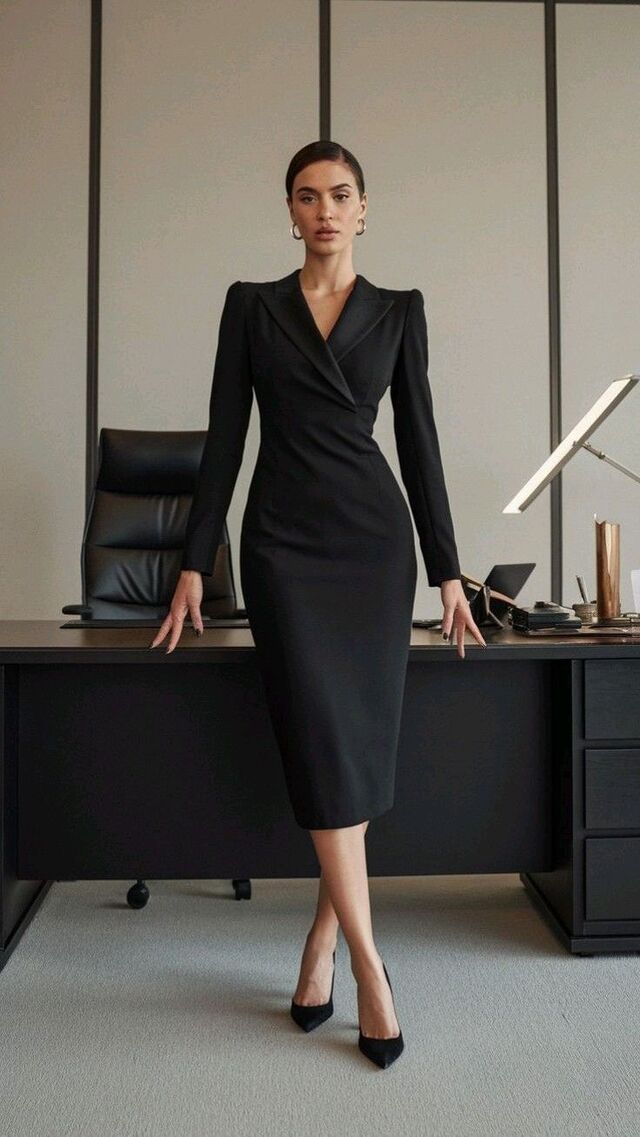 Váy body không chỉ tôn dáng mà còn tạo nên hình ảnh người phụ nữ tự tin, kiểm soát tốt bản thân và công việc. Kiểu ảnh này thường được sử dụng trong các bài viết tôn vinh phái đẹp thành công hoặc làm hình minh họa cho nội dung truyền cảm hứng.