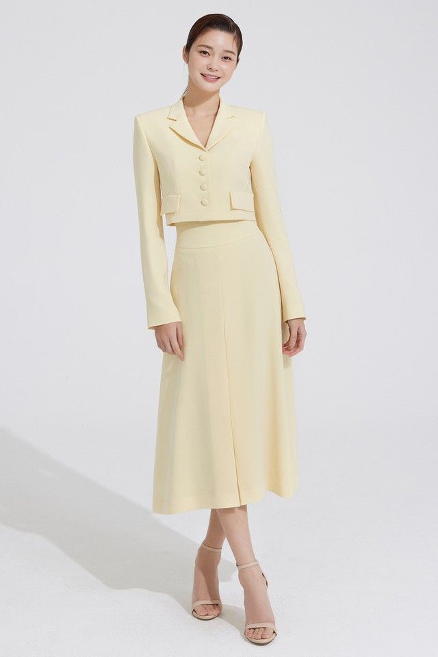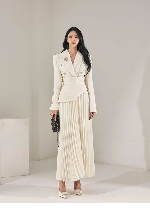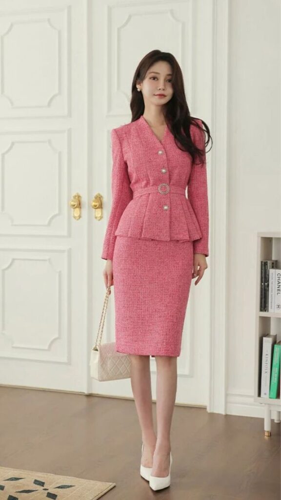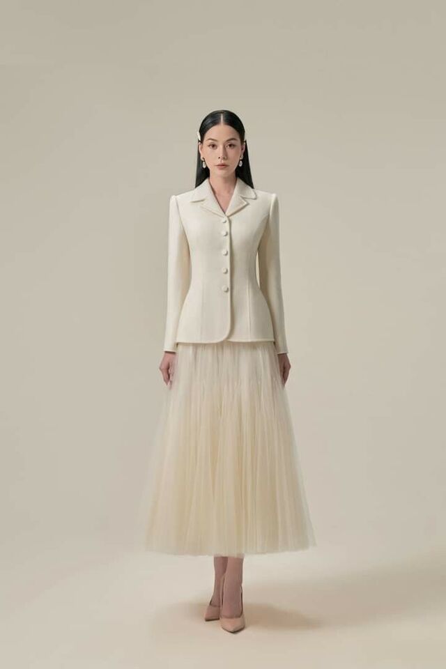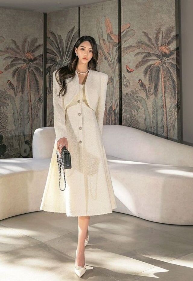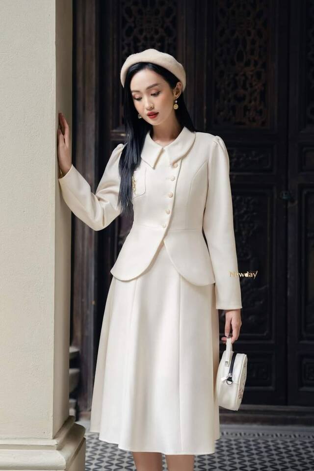 Bên cạnh vest lịch lãm, hình ảnh nữ doanh nhân mặc váy cũng chiếm trọn cảm tình bởi vẻ đẹp dịu dàng, thanh thoát nhưng vẫn giữ được nét chỉn chu, chuyên nghiệp. Những chiếc váy công sở được thiết kế vừa vặn, tinh tế giúp người phụ nữ tỏa sáng trong công việc, tạo cảm hứng cho nhiều bộ ảnh mang phong cách thanh lịch và hiện đại.