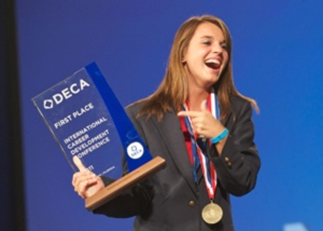 Ảnh doanh nhân thành đạt nữ cầm cúp, bằng khen
