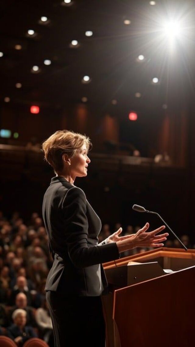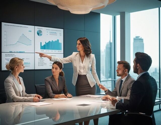Hình ảnh doanh nhân nữ đang thuyết trình hoặc hội họp