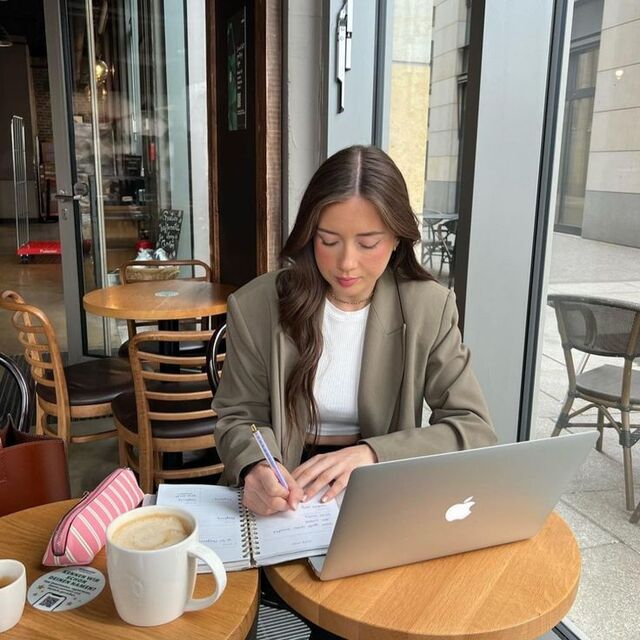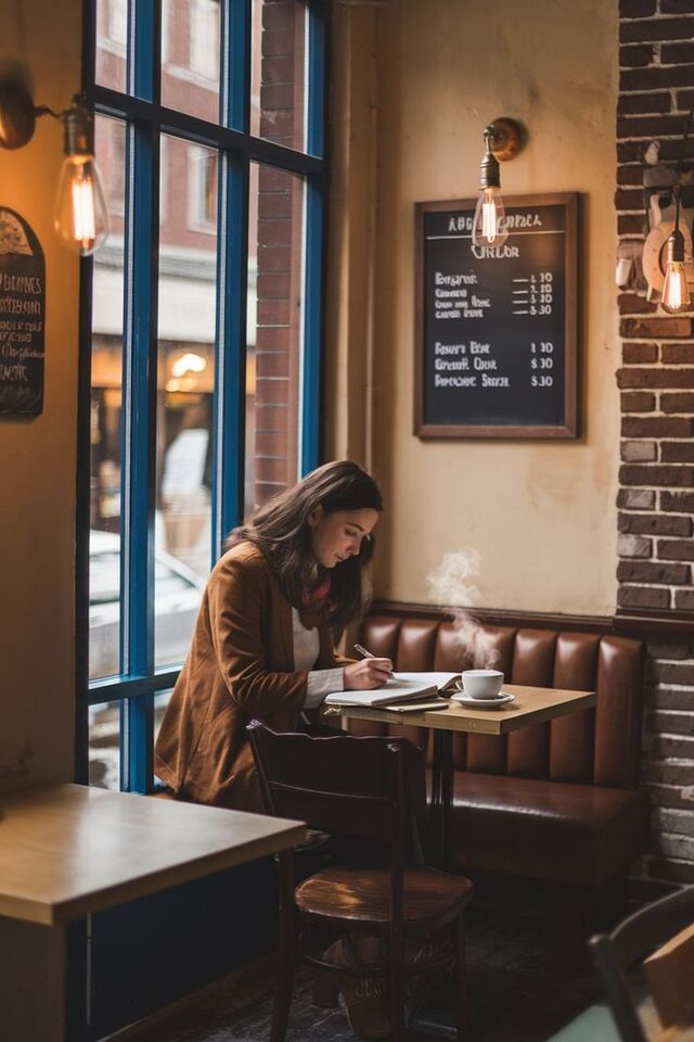 Không gian quán cà phê hoặc coworking space thường là nơi khơi nguồn sáng tạo và đổi mới. Hình ảnh nữ doanh nhân trẻ đang làm việc, họp nhóm hay trao đổi ý tưởng tại những không gian này thể hiện lối sống linh hoạt, năng động và gần gũi phù hợp với hình tượng người phụ nữ của thời đại số.