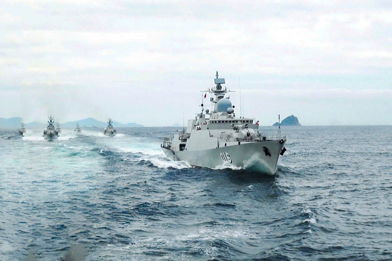 Các tàu của Vùng 4 huấn luyện trên biển. Ảnh: PV