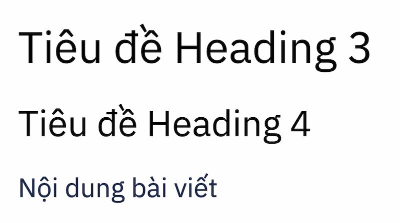 Thường các bài viết sẽ bao gồm các tiêu đề chính và tiêu đề phụ. Với tiêu đề chính bạn chọn định dạng Heading 3 trong thẻ định dạng và chọn Heading 4 để bổ trợ thông tin cho tiêu đề chính.