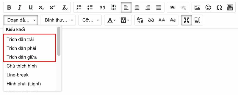 Sử dụng nút Ngoặc kép cho đoạn văn cần trích dẫn như hình bên dưới