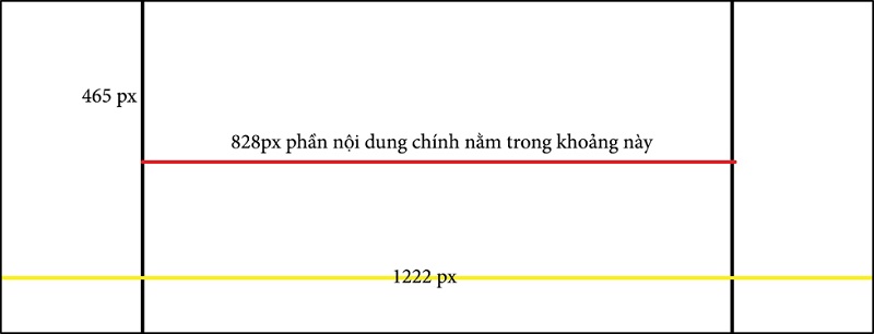Vì vậy, để thông tin hiển thị đầy đủ trên cả máy tính và điện thoại bạn cần thiết kế ảnh theo kích thước 1222 x 465 px. Trong đó phần thông tin cần hiển thị chủ yếu nằm trong ô 828 x 465 px như ảnh dưới đây.