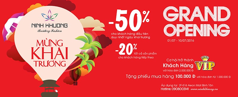 Khai trương tưng bừng nên thường nền dùng gam màu đỏ cho may mắn