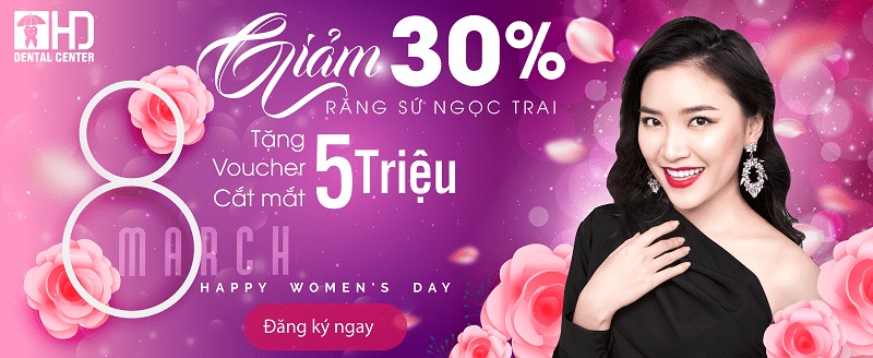 Răng sứ thẩm mỹ với banner nền hồng siêu tươi tắn