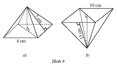 b) Thể tích của hình chóp tứ giác đều ở Hình 9a là: