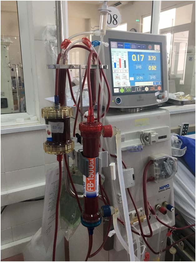 – Phối hợp thận nhân tạo (HD) và hấp phụ máu (HP) bằng quả lọc Resin.