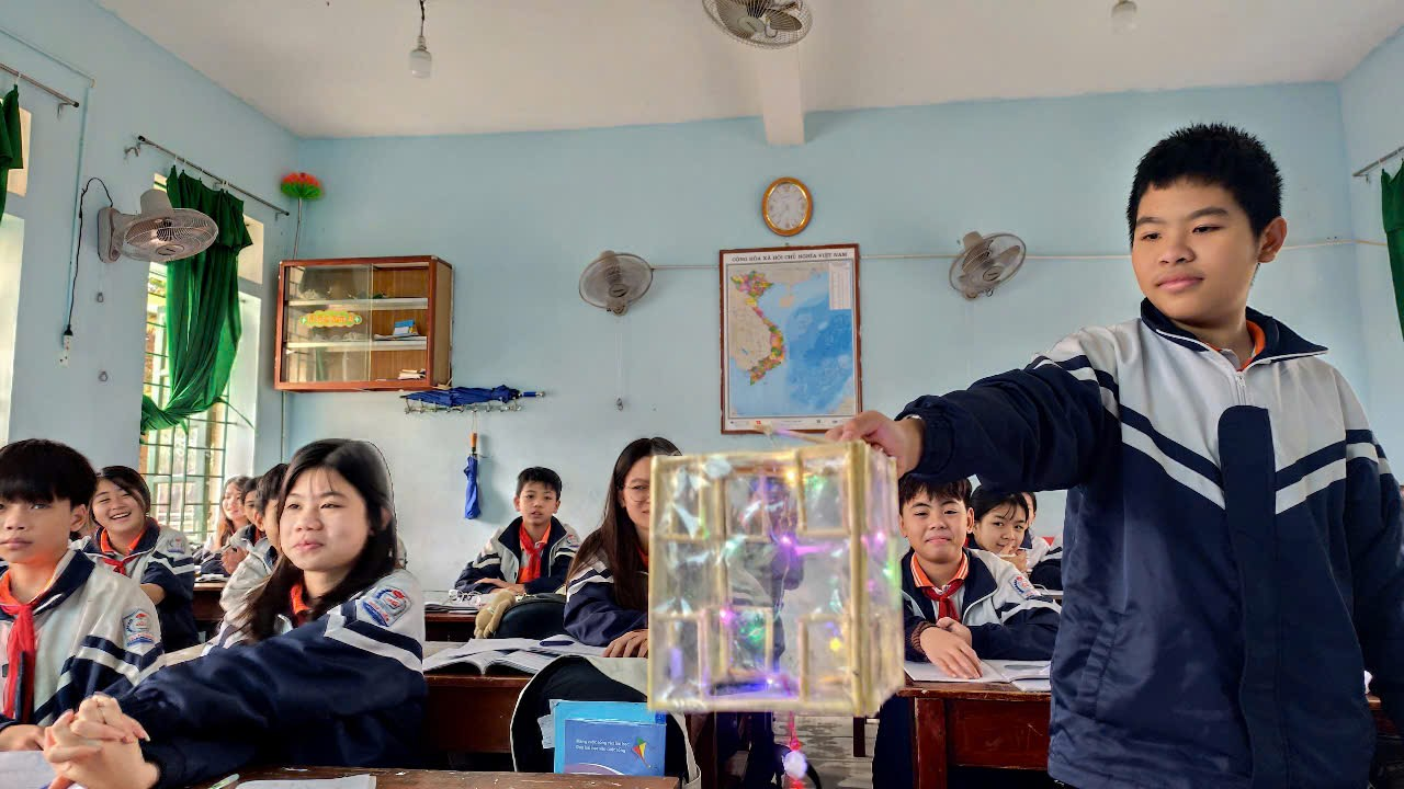 – Học sinh trình diễn lồng đèn kéo quân và lịch để bàn có dạng hình lăng trụ đúng