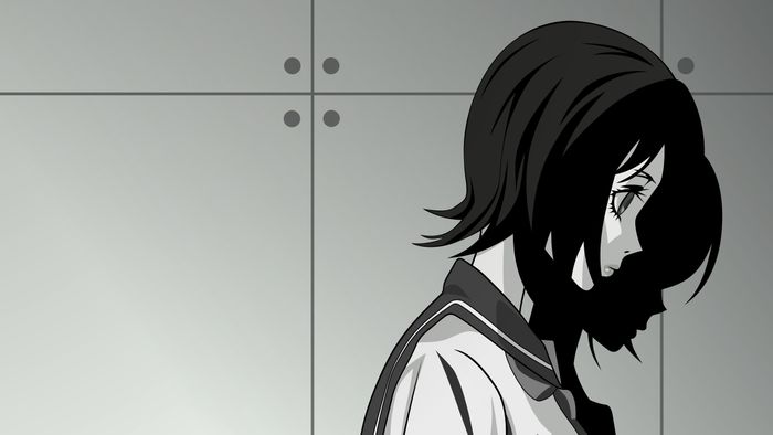 Hình nền đen trắng anime tôn lên vẻ đẹp của nhân vật tóc đen, độ phân giải 1920×1080, mang đến sự huyền bí và cuốn hút