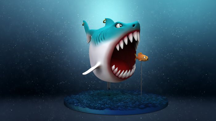 Hình ảnh cá mập 3D đáng yêu và ấn tượng, được thiết kế với độ chân thực và sáng tạo.