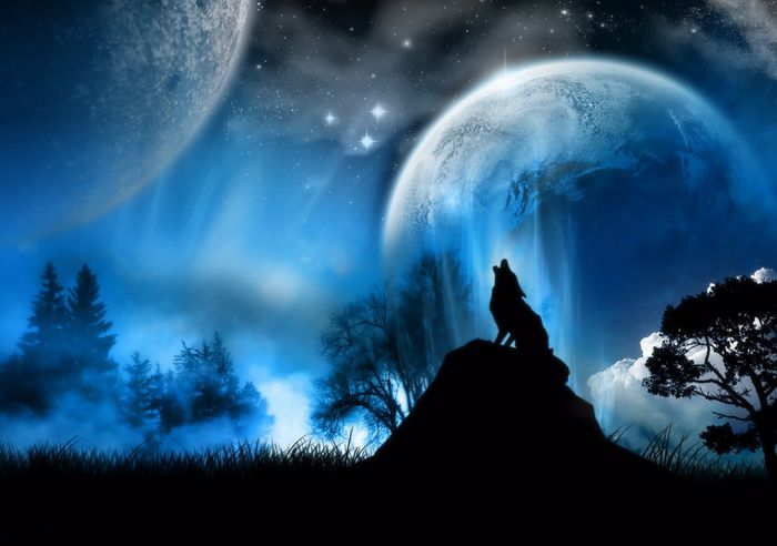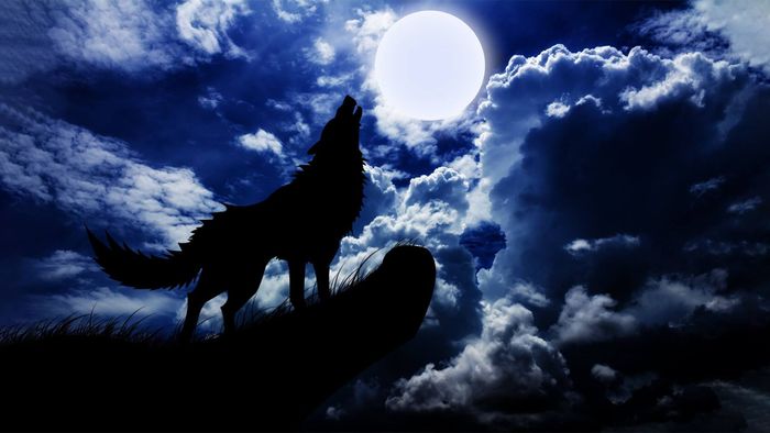 Hình nền con sói cô đơn dưới ánh trăng, khắc họa vẻ đẹp huyền ảo và đầy mộng mơ