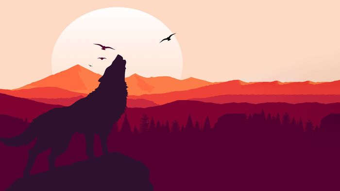 Hình nền desktop ấn tượng với hình ảnh chó sói cô đơn giữa không gian rộng lớn