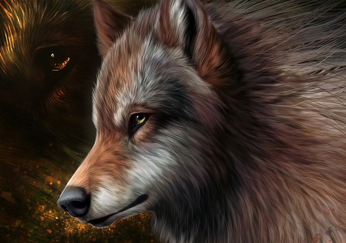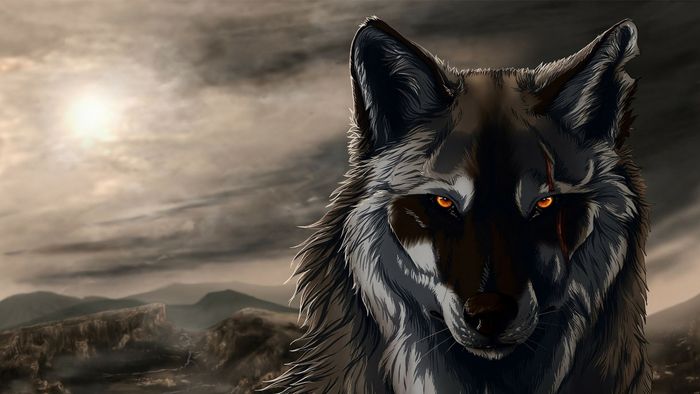 Hình nền nghệ thuật với chó sói cô đơn trong phong cách độc đáo và sâu lắng