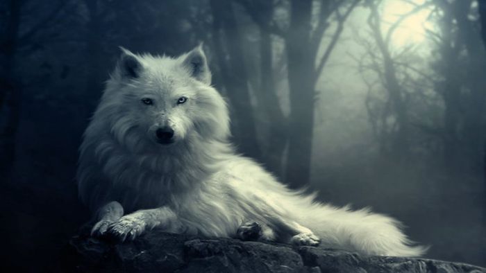 Hình nền chó sói trắng cô đơn, toát lên vẻ đẹp tinh khiết và bí ẩn của loài sói