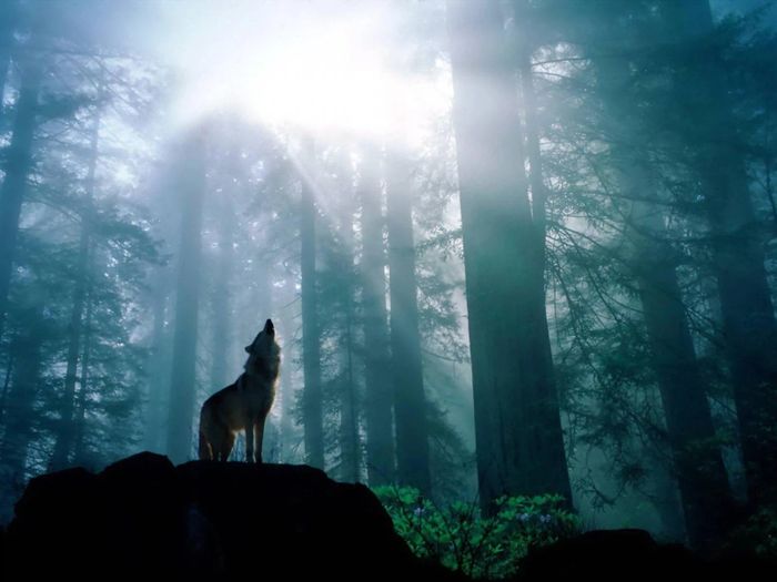 Hình nền con sói cô đơn giữa rừng sâu, khắc họa sự hùng vĩ và hoang dã của thiên nhiên